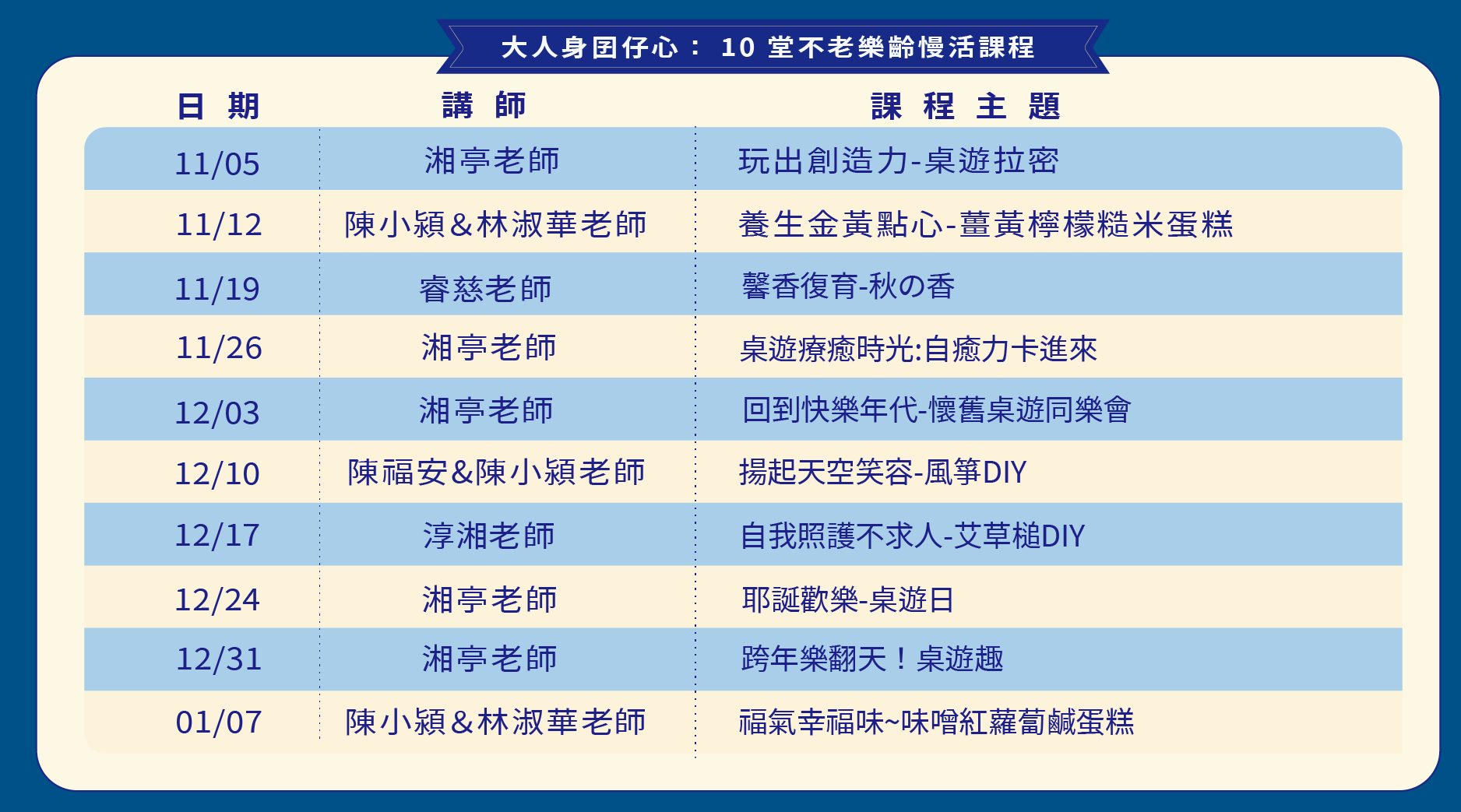 這一期推出三大主題系列——動腦桌遊 × 養生烘焙 × 香氣手作