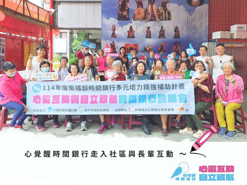 時間銀行推廣互助機制,促進台中市民,做多元服務交換,打造老老相伴-心世界,提升長輩、身心障礙者的社會參與與自立自主權利。